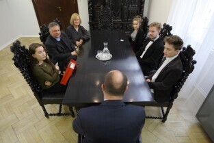 Gdańskie czworaczki - Adrianna, Klaudia, Michał i Patryk Szarmachowie - ukończyły 18 lat. Właśnie odebrały z rąk Prezydenta Pawła Adamowicza dowody osobiste. Nz Tata czworaczków Andrzej Szarmach.