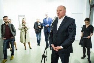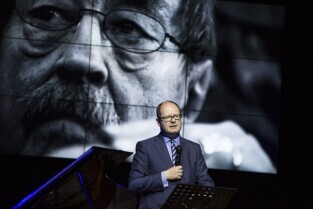 Uroczystość pożegnania zmarłego pisarza, grafika i rzeźbiarza Güntera Grassa. Wystawa "Günter Grass – kolekcja gdańska”, Gdańska Galeria Güntera Grassa (ul. Szeroka). Nz. Dyrektor Muzeum Narodowego w Gdańsku Wojciech Bonisławski