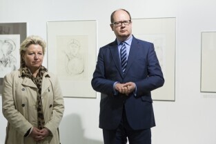 Uroczystość pożegnania zmarłego pisarza, grafika i rzeźbiarza Güntera Grassa. Wystawa "Günter Grass – kolekcja gdańska”, Gdańska Galeria Güntera Grassa (ul. Szeroka)