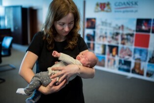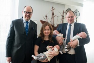 Gdańskie trojaczki z wizytą u Prezydenta Pawła Adamowicza. Gdańsk. Urząd Miejski, Nowe Ogrody