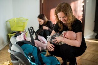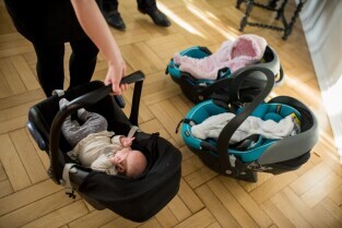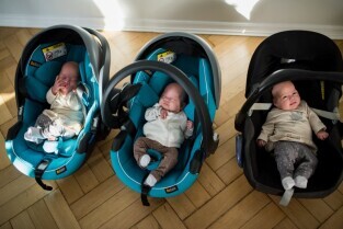 Gdańskie trojaczki z wizytą u Prezydenta Pawła Adamowicza. Gdańsk. Urząd Miejski, Nowe Ogrody. Nz rodzice trojaczków, Pani Joanna i Pan Bartosz