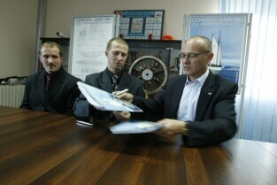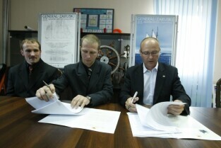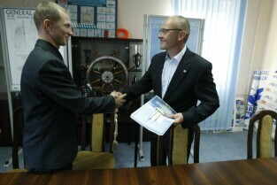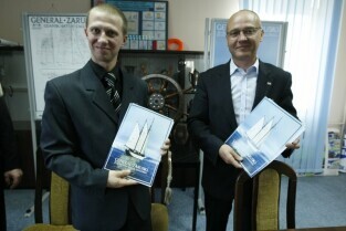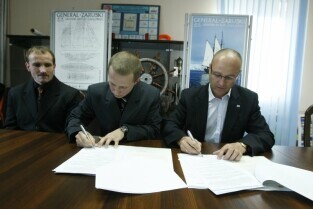 Podpisanie umowy na odbudowę drewnianego kadłuba jachtu s/y Generał Zaruski, którą podpisali: Dyrektor MOSiR Gdańsk Leszek Paszkowski i Prezes Complex Jacht Sebastian Kulling. Gdańsk, siedziba MOSiR. Nz. częśc wyposażenia jachtu