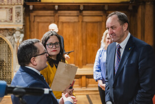 Gdańsk, NCK ul. Korzenna. Głośniej od bomb | spotkanie w trzecią rocznicę agresji Rosji na Ukrainę. Nz. Marszałek woj. pomorskiego Mieczysław Struk