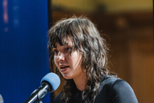 Gdańsk, NCK ul. Korzenna. Głośniej od bomb | spotkanie w trzecią rocznicę agresji Rosji na Ukrainę. Nz. dyrektorka NCK Marta Szadowiak