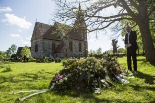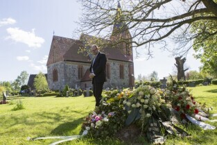 Behlendorf koło Lubeki (Niemcy). Grób noblisty Güntera Grassa. Nz. Prezydent Gdańska Paweł Adamowicz