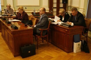 IV sesja Rady Miasta Gdańska kadencji 2010-2014. Nz. Prezydium Rady, od prawej: Jacek Teodorczyk, Agnieszka Owczarczak, Jarosław Gorecki, Bogdan Oleszek