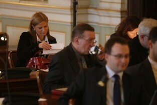 IV sesja Rady Miasta Gdańska kadencji 2010-2014. Nz. Prezydium Rady, od prawej: Jacek Teodorczyk, Agnieszka Owczarczak, Jarosław Gorecki