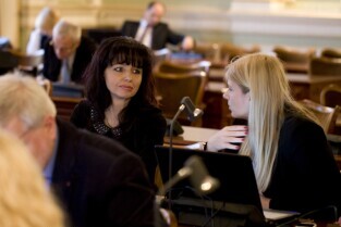 Grudniowa sesja Rady Miasta Gdańska w Nowym Ratuszu. Nz. radne (od lewej): Żaneta Geryk i Beata Wierzba