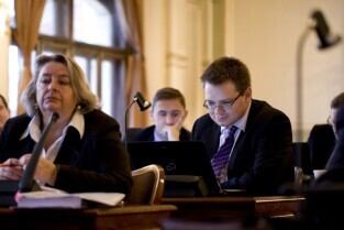 Grudniowa sesja Rady Miasta Gdańska w Nowym Ratuszu. Nz. radny Maciej Krupa