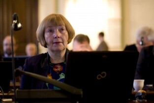 Grudniowa sesja Rady Miasta Gdańska w Nowym Ratuszu. Nz. radna Maria Małkowska