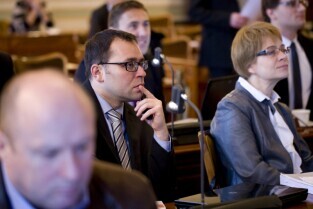Grudniowa sesja Rady Miasta Gdańska w Nowym Ratuszu. Nz. radny Piotr Dzik