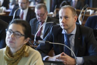 Gdańsk, Nowy Ratusz. Grudniowa sesja Rady Miasta Gdańska, podczas której m.in. uchwalony został budżet miasta w 2014 r. Nz. Radny Miasta Gdańska Piotr Gierszewski