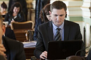 Gdańsk, Nowy Ratusz. Grudniowa sesja Rady Miasta Gdańska, podczas której m.in. uchwalony został budżet miasta w 2014 r. Nz. Radny Miasta Gdańska Piotr Skiba
