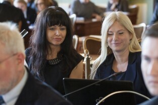 Gdańsk, Nowy Ratusz. Grudniowa sesja Rady Miasta Gdańska, podczas której m.in. uchwalony został budżet miasta w 2014 r. Nz. Radna Miasta Gdańska, od lewej: Żaneta Geryk i Beata Wierzba