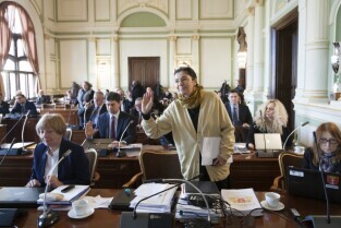 Gdańsk, Nowy Ratusz. Grudniowa sesja Rady Miasta Gdańska, podczas której m.in. uchwalony został budżet miasta w 2014 r. Nz. Radna Miasta Gdańska Małgorzata Chmiel