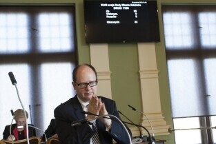 Gdańsk, Nowy Ratusz. Grudniowa sesja Rady Miasta Gdańska, podczas której m.in. uchwalony został budżet miasta w 2014 r. Nz. Prezydent Gdańska Paweł Adamowicz