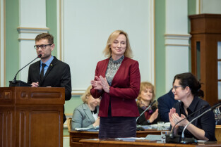 Gdańsk, Nowy Ratusz. Grudniowa sesja Rady Miasta Gdańska, podczas której m.in. uchwalony został budżet miasta w 2020 r. Nz. Raisa Korycka, Karel Dolinski i Joanna Krupadziorow