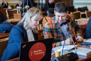 Gdańsk, Nowy Ratusz. Grudniowa sesja Rady Miasta Gdańska, podczas której m.in. uchwalony został budżet miasta w 2020 r. Nz. Waldemar Jaroszewicz i Joanna Cabaj