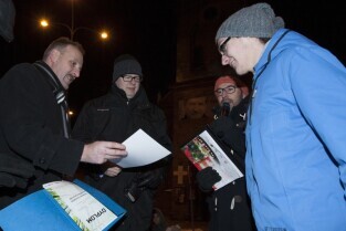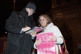 Mikołajkowy festyn "Gwiazdka na Oruni" z udziałem Prezydenta Gdańska Pawła Adamowicza, podczas którego uroczyście zapalono światełka na choince, a całość uświetnił pokaz sztucznych ogni. Gdańsk Orunia, ul. Gościnna. Nz. wręczenie nagród w konkursie fotograficznym "Pomniki Przyrody Oruni"