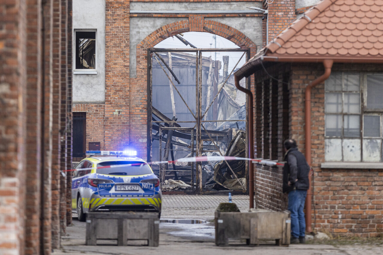 Gdańsk. Strażacy dogaszają ostatnie skupiska ognia w hiostorycznej hali Zakładów Naprawczych Taboru Kolejowego.