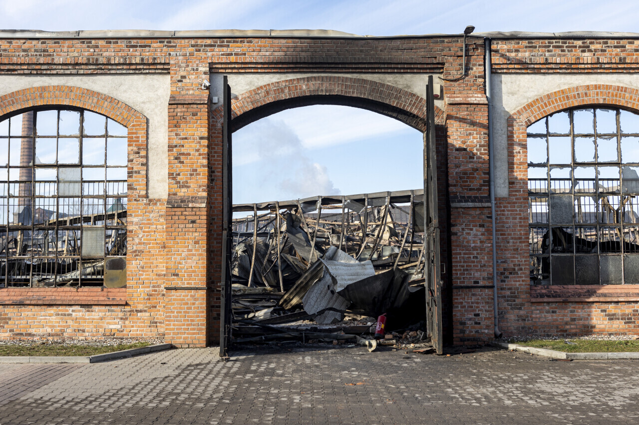 Gdańsk. Strażacy dogaszają ostatnie skupiska ognia w hiostorycznej hali Zakładów Naprawczych Taboru Kolejowego.