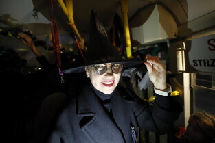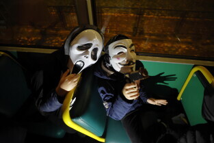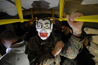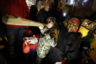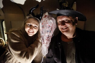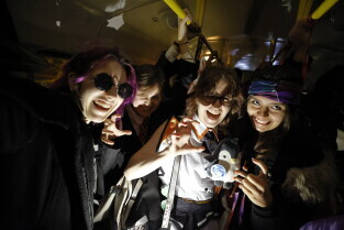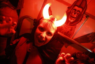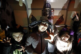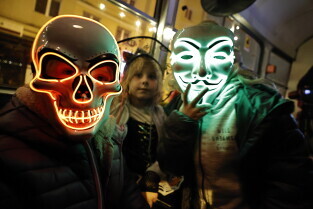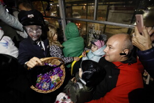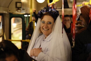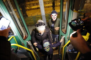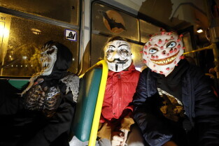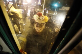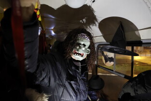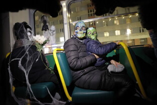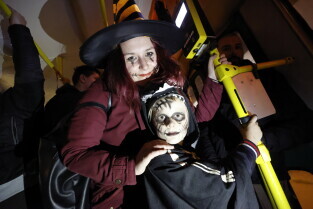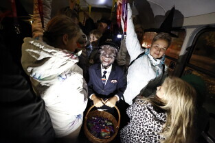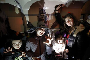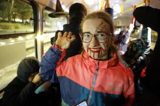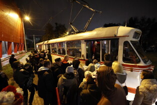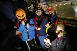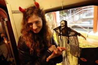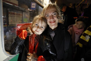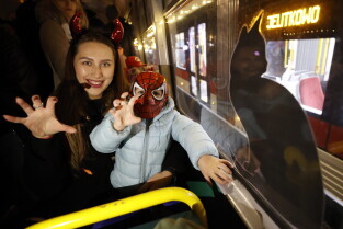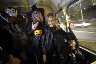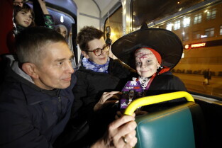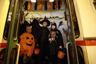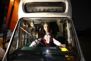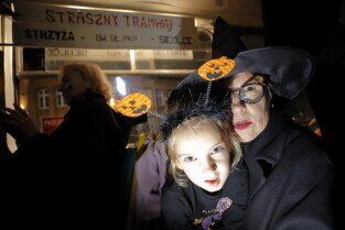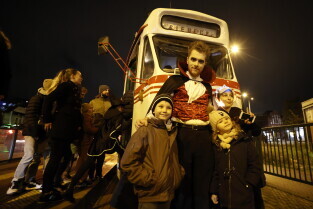 Gdańsk. "Halloweenowy Tramwaj," pojazd z historycznej floty Gdańskich Autobusów i Tramwajów – Konstal 102Na.