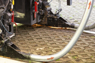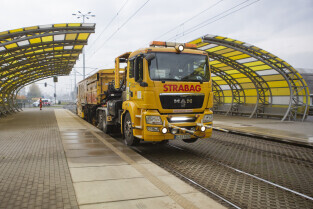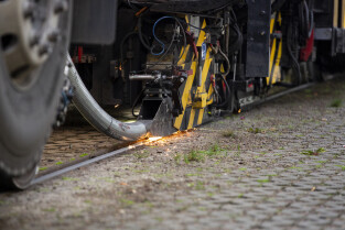 Heblowanie torów tramwajowych. Gdańsk Letnica, Marynarki Polskiej