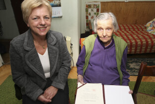Stulatka Helena Wiełłowicz urodzona 27.10.1908 r. w Lidzie. Z tej okazji w jej domu na Gdańskiej Zaspie życzenia złożyła Danuta Janczarek, Sekretarz Miasta Gdańska