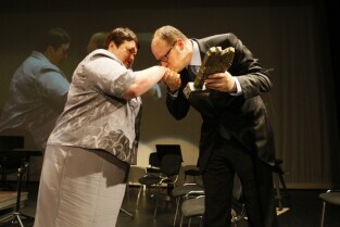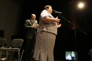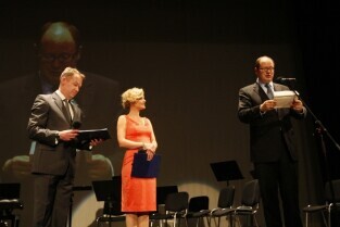 Henryka Krzywonos-Strycharska otrzymała tytuł Gdańszczanina Roku 2010. Gala wręczenia tego wyróżnienia odbyła się w Operze Bałtyckiej. Nz. prowadzący galę Mirosław Baka i Monika Richardson, po prawej Prezydent Gdańska Paweł Adamowicz odczytuje werdykt jury