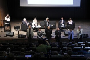 Gdańsk, Europejskie Centrum Solidarności. Spotkanie Hibakusha z dziećmi, rodzicami i nauczycielami z gdańskich placówek oświatowych. To jest druga wizyta w Gdańsku ocalonych z wybuchu bomb atomowych zrzuconych na Hiroszimę i Nagasaki.