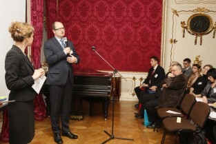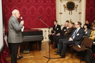 Historia naturalna jedzenia. Między antykiem a XIX wiekiem. Konferencja naukowa inaugurująca obchody 100-lecia otwarcia Muzeum Wnętrz mieszczańskich. Gdańsk, Dom Uphagena. Nz. przemawia Dyrektor MHMG Adam Koperkiewicz