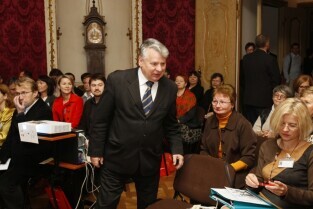 Historia naturalna jedzenia. Między antykiem a XIX wiekiem. Konferencja naukowa inaugurująca obchody 100-lecia otwarcia Muzeum Wnętrz mieszczańskich. Gdańsk, Dom Uphagena. Nz. Prezydent Gdańska Paweł Adamowicz
