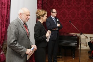 Historia naturalna jedzenia. Między antykiem a XIX wiekiem. Konferencja naukowa inaugurująca obchody 100-lecia otwarcia Muzeum Wnętrz mieszczańskich. Gdańsk, Dom Uphagena. Nz. od lewej: Dyrektor MHMG Adam Koperkiewicz, kurator konferencji dr hab. Beata Możejko, Prezydent Gdańska Paweł Adamowicz