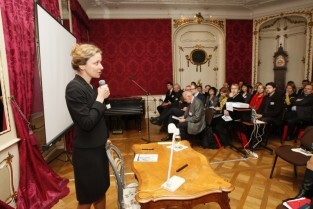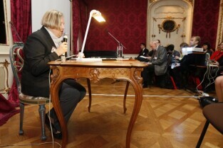 Historia naturalna jedzenia. Między antykiem a XIX wiekiem. Konferencja naukowa inaugurująca obchody 100-lecia otwarcia Muzeum Wnętrz mieszczańskich. Gdańsk, Dom Uphagena. Nz. dr Ewa Barylewska-Szymańska opowiada o postaci Johanna Uphagena