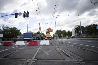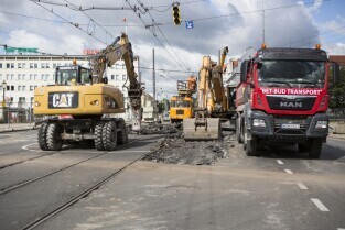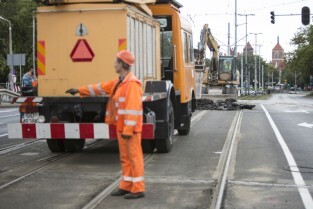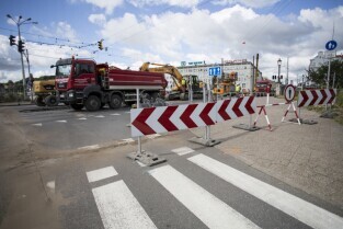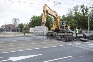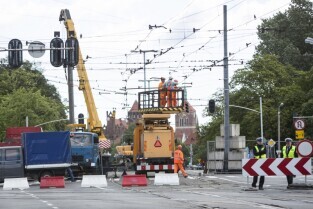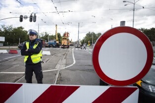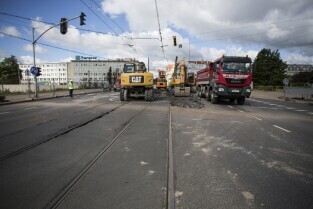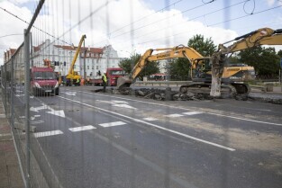 Gdańsk Śródmieście. Zamknięty dla ruchu kołowego wiadukt nad torami kolejowymi w ciągu ul. Hucisko. Przebudowa obiektu jest związana z rozpoczęciem prac przy budowie Forum Gdańsk