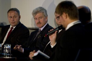 Sopot, Hotel Sheraton. III Konferencja ABSL. Sektor Nowoczesnych Usług Biznesowych w Polsce. Panel dyskusyjny pt. "Dostosowywanie Oferty Polskich Miast do Aktualnych Potrzeb Biznesu". Nz. Prezydent Bydgoszczy Rafał Bruski i Prezydent Poznania Ryszard Grobelny