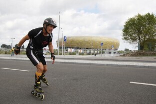 III Maraton Sierpniowy im. Lecha Wałęsy - zawody wrotkarskie o zasięgu międzynarodowym, wchodząca w skład Pucharu Świata. Trasa maratonu biegła wokół PGE Areny oraz ulicami: Żaglową i Marynarki Polskiej. Nz. Posłanka na Sejm RP Agnieszka Pomaska z córką Zosią