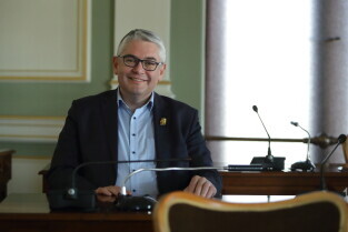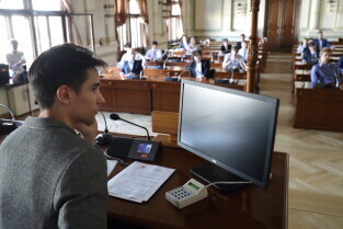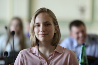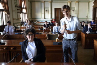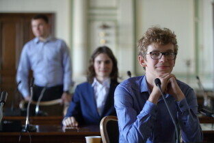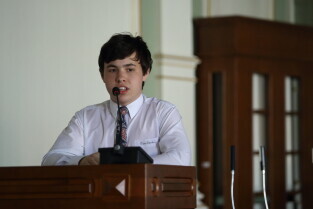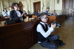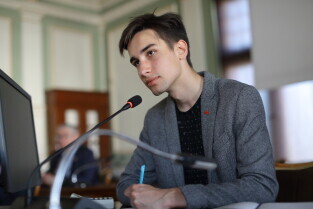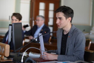 Gdańsk. III sesja Młodzieżowej Rady Miasta Gdańska. Nz. Przewodniczący - Jakub Hamanowicz.