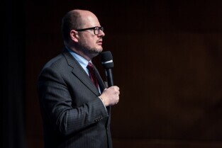 II KONFERENCJA SAMORZĄDÓW UCZNIOWSKICH w Europejskim Centrum Solidarności. Nz Prezydent Gdańska, Paweł Adamowicz