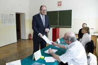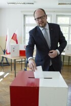 Gdańsk, Technikum Łączności. Prezydent Gdańska Paweł Adamowicz głosuje w II turze wyborów Prezydenta Rzeczypospolitej Polskiej