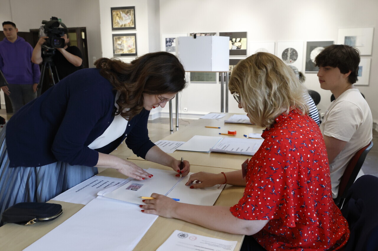 Gdańsk.II tura wyborów prezydenckich, otwarcie lokali wyborczych. Nz. Głosuje prezydent Gdańska Aleksandra Dulkiewicz.