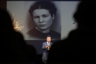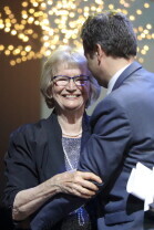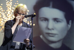 Gdańsk, Teatr Szekspirowski. IV Międzynarodowy Zjazd Szkół i Placówek im. Ireny Sendlerowej. Nz. Janina Zgrzembska, córka Ireny Sendler.