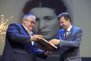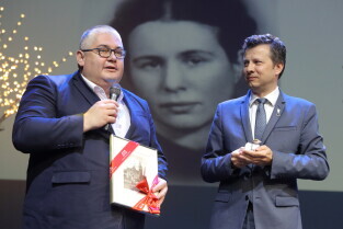 Gdańsk, Teatr Szekspirowski. IV Międzynarodowy Zjazd Szkół i Placówek im. Ireny Sendlerowej. Nz. Wiceptezydent Gdańska Piotr Kowalczuk i Rzecznik Praw Dziecka Marek Michalak.