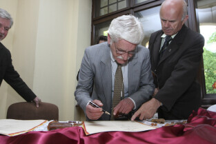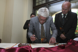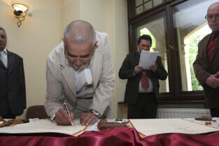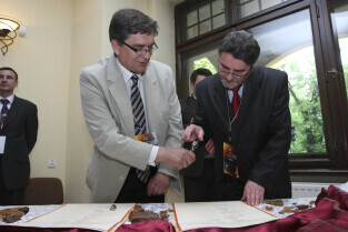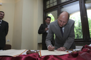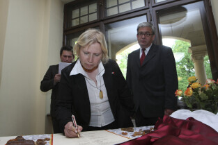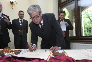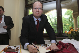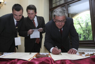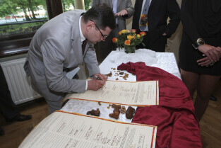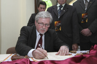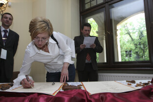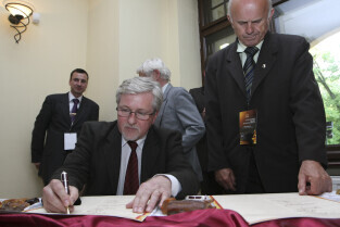 I Forum Miast Szlaku Bursztynowego. Podpisanie listu intencyjnego w sprawie wspólnych działań promocyjnych i turystycznych. Nz. Prezydent Gdańska Paweł Adamowicz