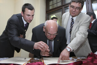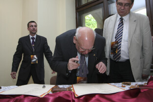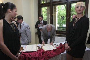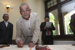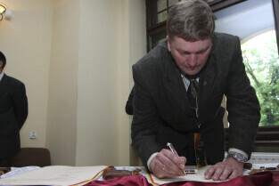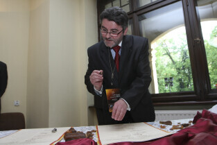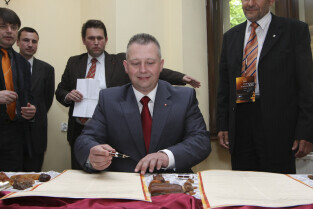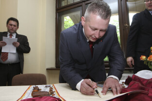 I Forum Miast Szlaku Bursztynowego. Podpisanie listu intencyjnego w sprawie wspólnych działań promocyjnych i turystycznych. Nz. Gdański bursztynnik Mariusz Gliwiński