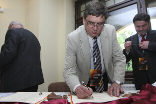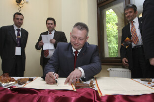 I Forum Miast Szlaku Bursztynowego. Podpisanie listu intencyjnego w sprawie wspólnych działań promocyjnych i turystycznych. Nz. Z-ca Prezydenta Gdańska Andrzej Bojanowski