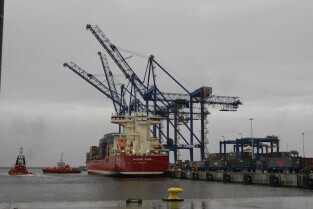 I urodziny terminala kontenerowego DCT Gdańsk. Nz. załadunek kontenerowca Maersk Rome