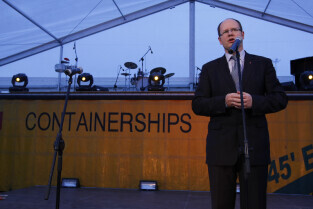 I urodziny terminala kontenerowego DCT Gdańsk. Nz. przemówienie Prezydenta Gdańska Pawła Adamowicza podczas uroczystej gali.