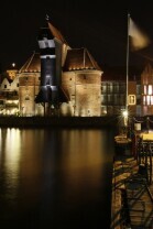 Iluminacja gdańskiego Żurawia przy Długim Pobrzeżu. Do podświetlenia zabytku wykorzystano pod 50 energooszczędnych lamp LED i halogenowych. Prace nad montażem oraz ustawieniem światła rozpoczęły się w zeszłym roku, a ich koszt pokryły firmy Philips i Energa