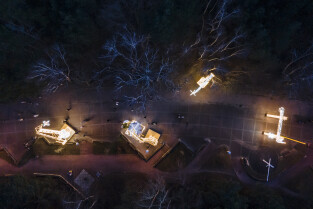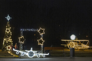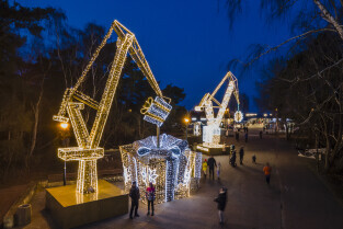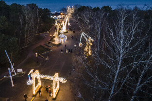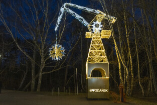 Gdańsk. Iluminacje świąteczne w Brzeźnie i na Zaspie. Nz. Zaspa Park Jana Pawła II.